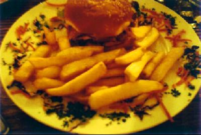 ハンバーガー(写真)1000CFP、マグロのグリル1600CFP(1CFP=約1円強)。- 旅行時期