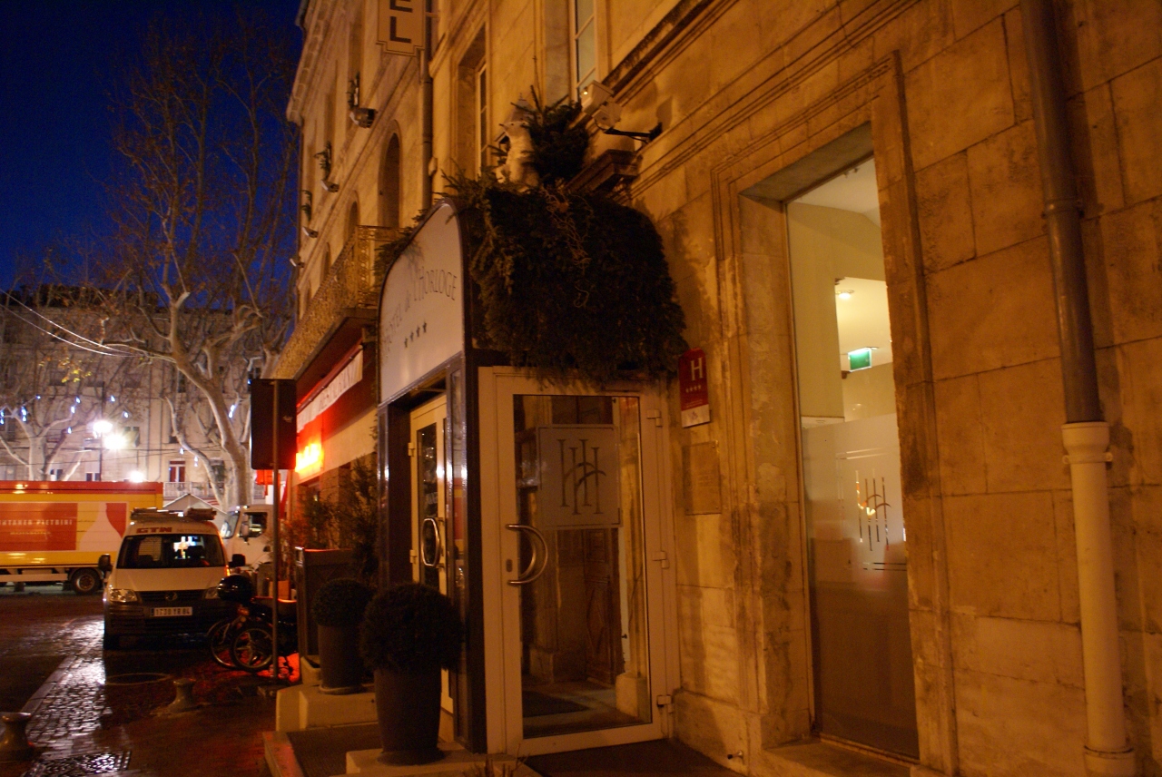 TGVアヴィニョン駅からバスにのり終点からクリスマスイルミネーションに輝くリュプブリック通りを歩き、約10分。