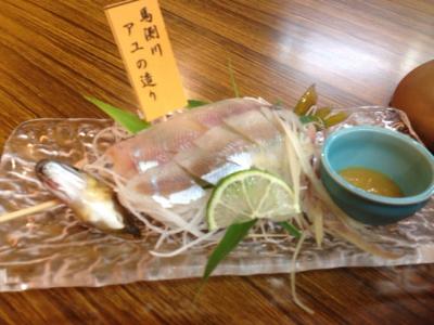 - 夕食時にサービスで鮎のお刺身をいただきました。おいしかったです。