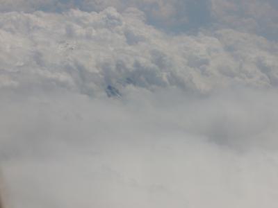 出発したときは曇りがち。雲の上に出たら、ちょっぴりですが富士山が見えま...