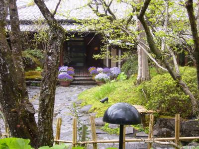 由布院到着!お昼は「花野そば」に行きました。こういうお店のたたずまいは...
