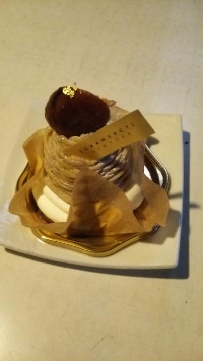 和栗のモンブランを食べましたが、イマイチ栗の味が弱く、残念な感じ。お値段は高めなので、もう少し頑張って欲しい。底にあった、チョコレートがコーティングされたクッキーはチョコレートがビターでコーティングされているのでパリッとした食感で美味しかったです。
