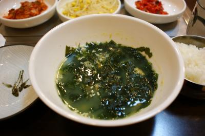 <帰国の朝と朝食:うにわかめスープ>朝、冨田君が起きて、準備をしている...