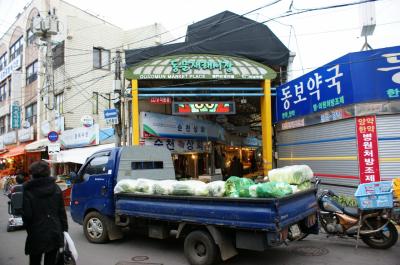 アーケードには漢字で、東門在来市場の文字が見える。正式には、東門在来市...