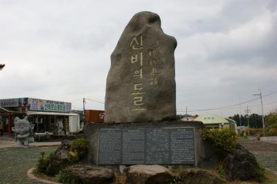 そして、その石碑の前まで行くと、石碑にはハングル文字と漢字で“神秘道路...