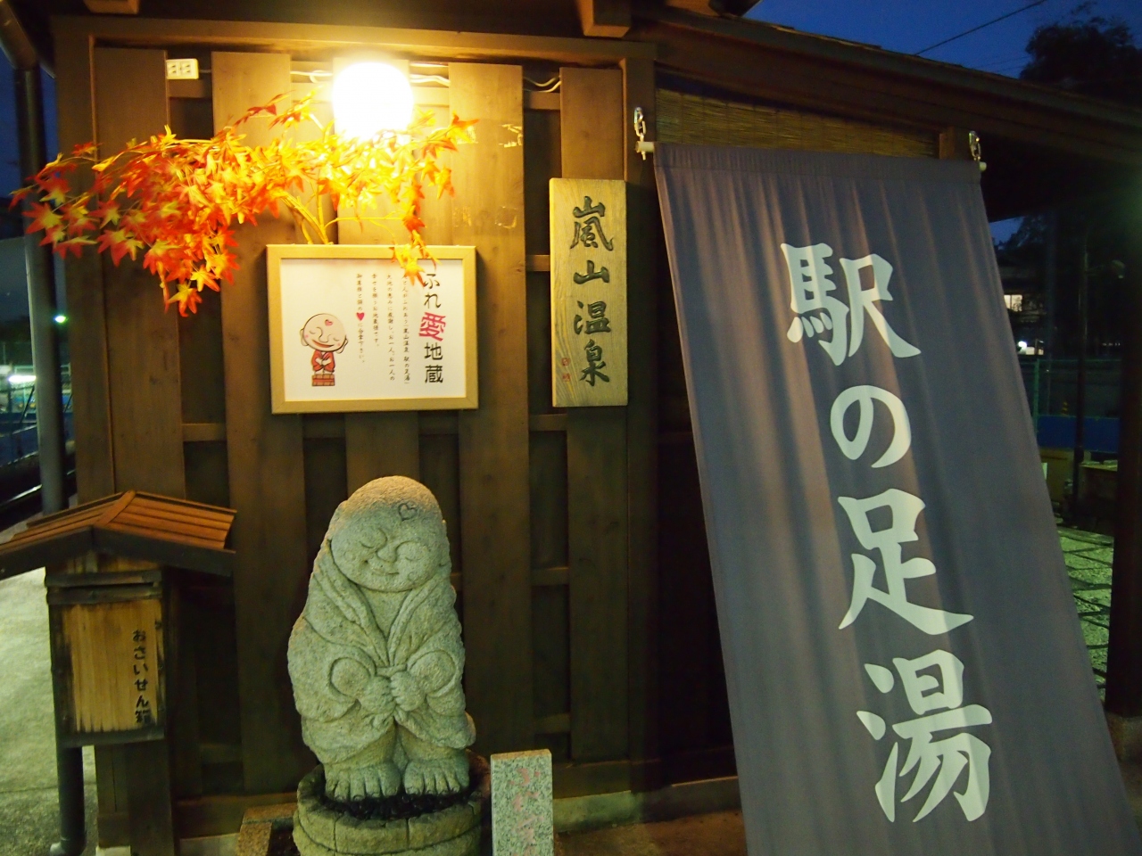 嵐山駅構内には足湯があって、冬はとくに気持ちがいい♪タオルも買えるのでいきなり行っても大丈夫。