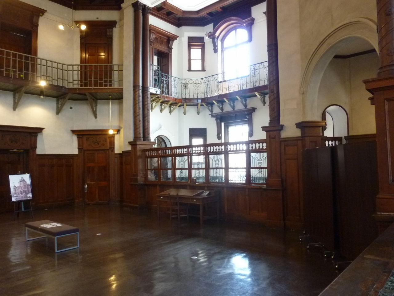 駅でレンタサイクルを借りていきました。街中に突然ぽつんと立っている感じです。信号のある交差点の角にたっていました。中はフリースペースもあり、ちらっと見学できました。昔の銀行として当時の様子を想像でき、歴史を感じます。