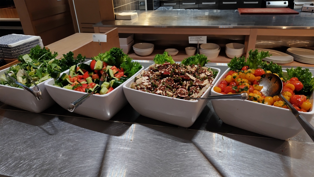 とても広いです。座るスペースもいろいろなタイプのソファーや椅子がありました。広くて静かで、くつろげました。もちろん食事も充実しています。サラダがとてもおいしかったです。食べ終わったものはすぐに片づけてくれてました。居心地の良いラウンジです。