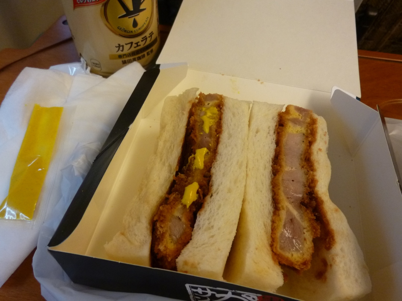 ここでゆっくりトンカツをいただきたかったのですが、時間がなく、お持ち帰り用にサンドイッチをお願いしました。600円だったと思います。ちょっとのぞいたお店に雰囲気はとてもよく、次はここで座って食べたいなと思いました。サンドイッチは新幹線の中で食べましたが、とてもおいしかったです。
