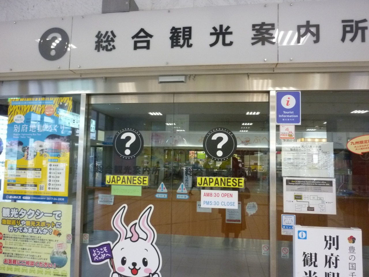 3人のスタッフがてきぱきと案内されていました。亀の井バスの湯布院への往復割引切符が買えるとのことでしたが、8時半からしか開かなくて買えなくて残念。事前に行けばよかったと後悔しました。早くから開いていればもっと便利なのですが。