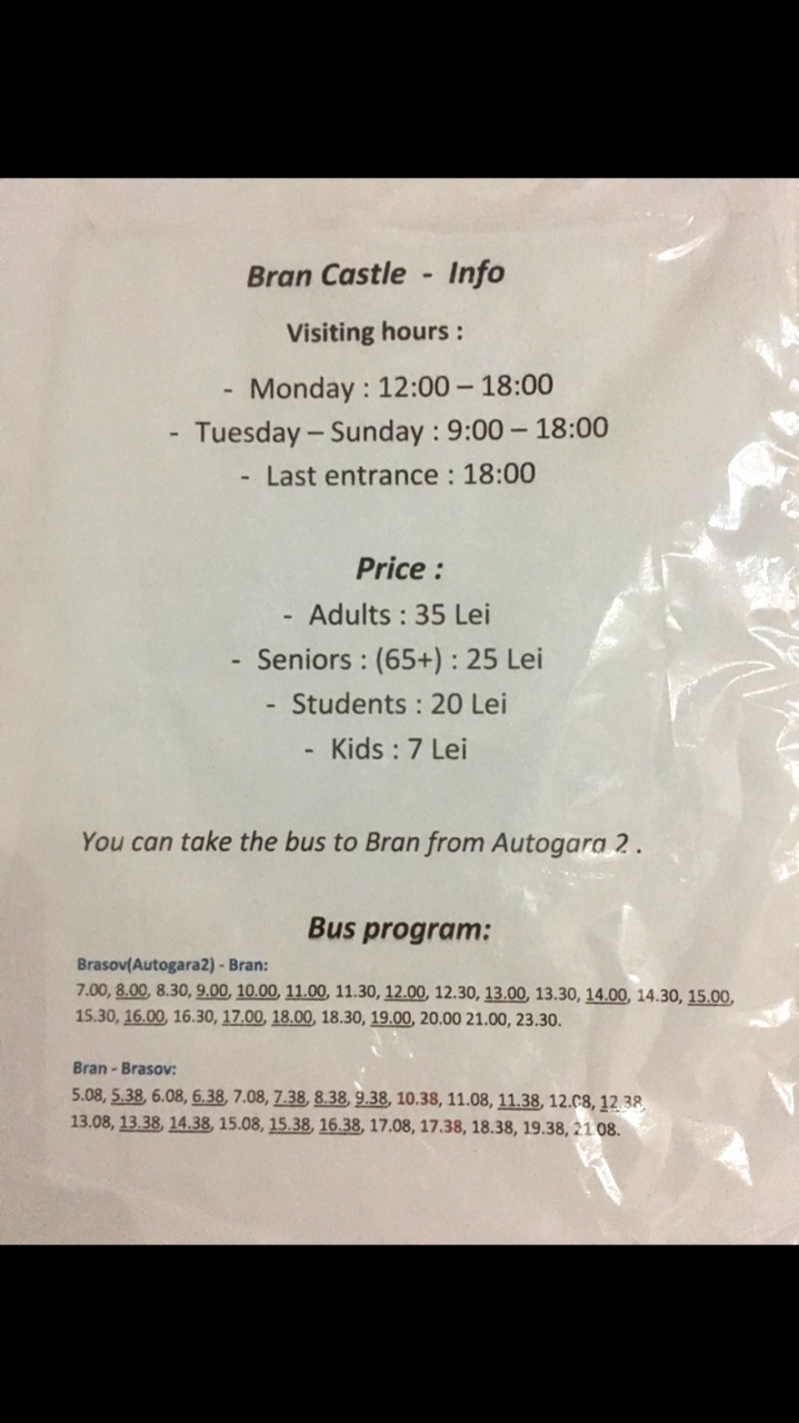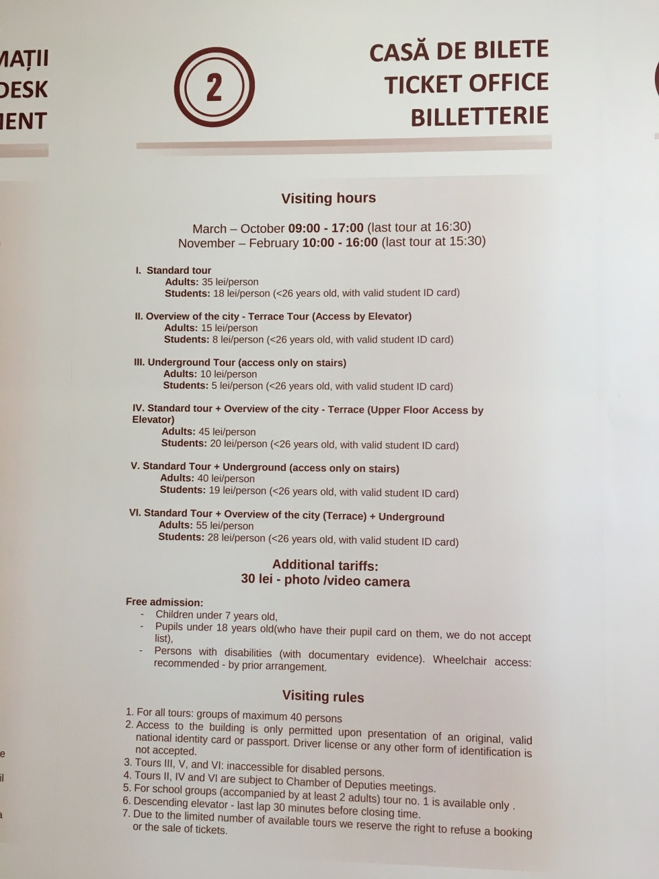 2017年夏の時点では、9人までの個人予約は電話のみの受付。受付日時は訪問日前日の9:00-16:00, + 40 733 558 102 または +40 733 558 103 にかけて人数・希望時間・言語を伝える必要があります。電話受付の方は英語での会話が可能でした。