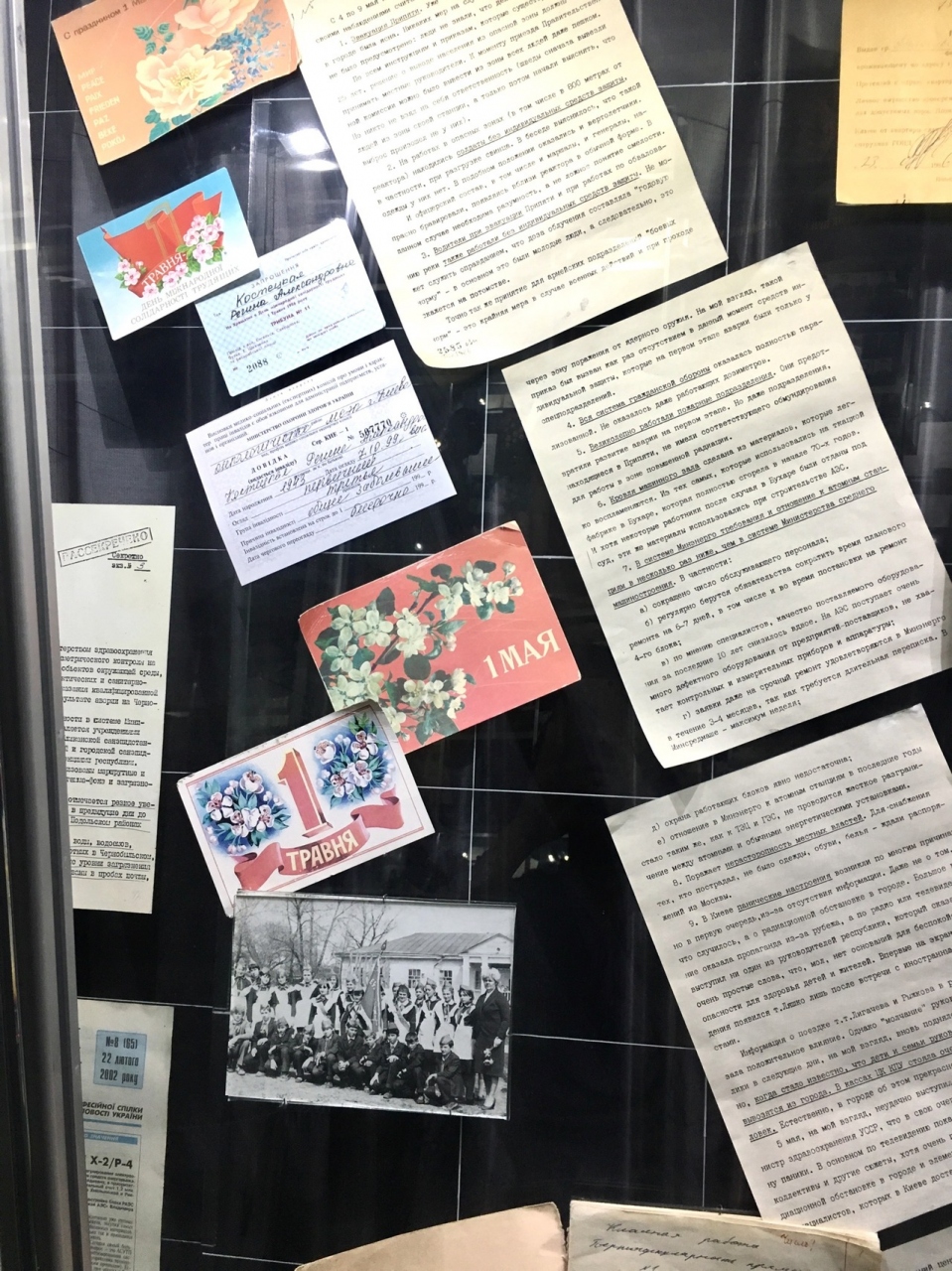 チェルノブイリ事故が起こった理由や仕組み、当時の報道のされ方、事故被害者にまつわる物や写真などの展示がありました。