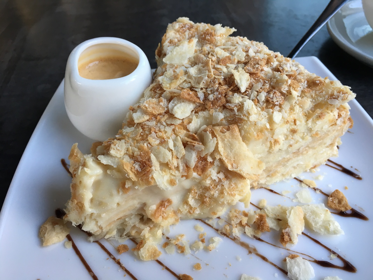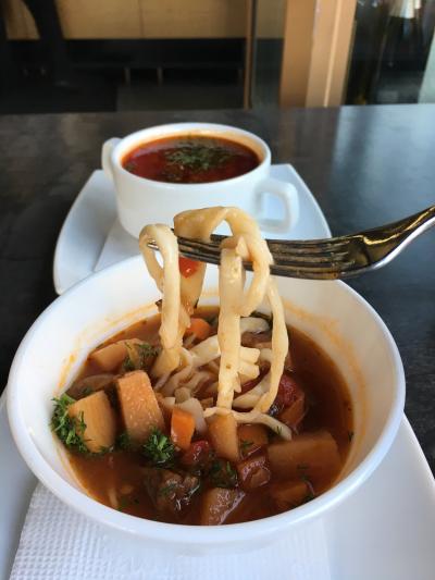 こちらのお店では、クリミア風ボルシチとラグマン、クリミアハーブティーにナポレオンタルトをいただきました。