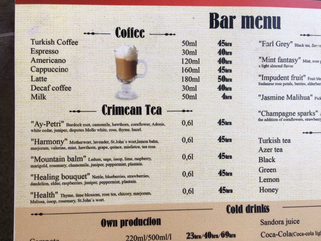このお店は独立広場のマクドナルド前という一等地にあり、アクセスは抜群。他にもキエフにはクリミア・タタール料理屋がいくつもあるので、食べ比べてみるのも良いと思います。- 旅行時期