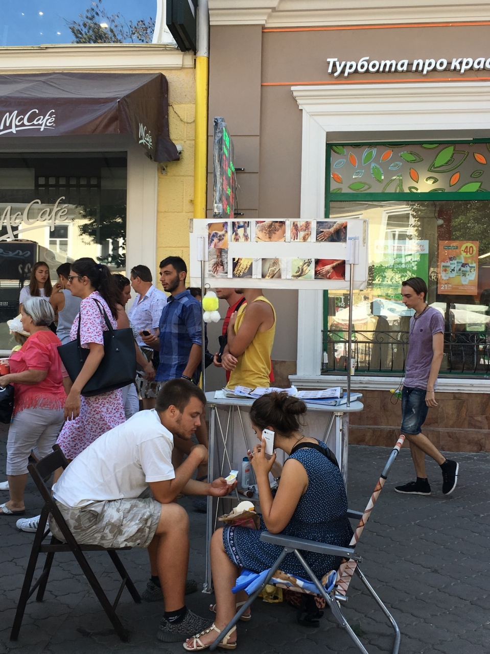 こちらの通りはかつての旧ソ連時代から有名な通りで、昔から観光客で賑わっていたそうです。現在もたくさんの店が軒を連ねており、オデッサの町歩きの楽しさを十分に味わうことができます。コテコテですがお土産屋も沢山あるのでここで購入も可能です。