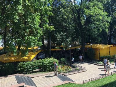 階段から南東方面に抜けるとプーシキン像があり、プーシキン通りに通じています。木陰をのんびり散歩したり、涼を取りながら過ごす人たちで賑わっていました。- 旅行時期