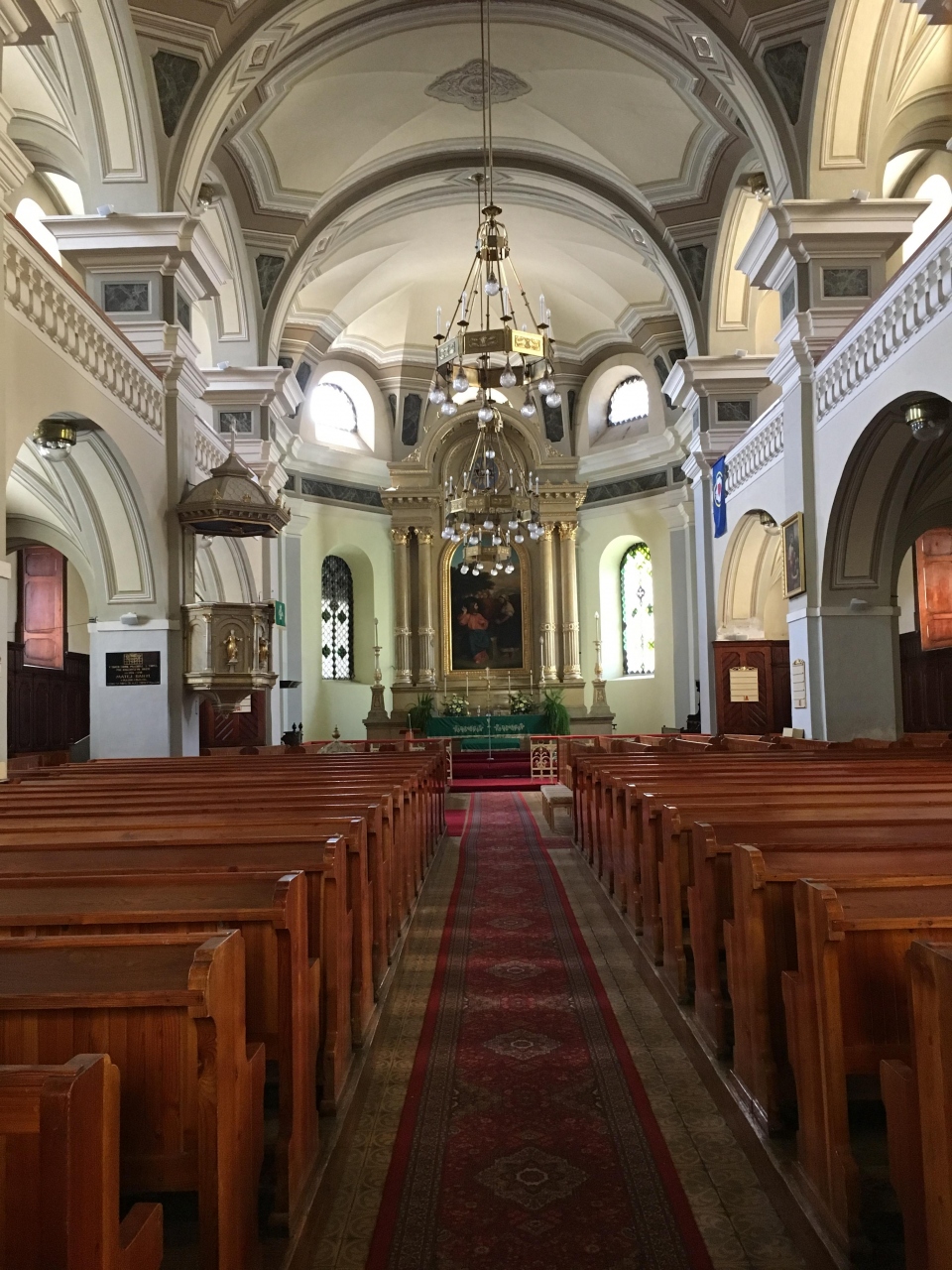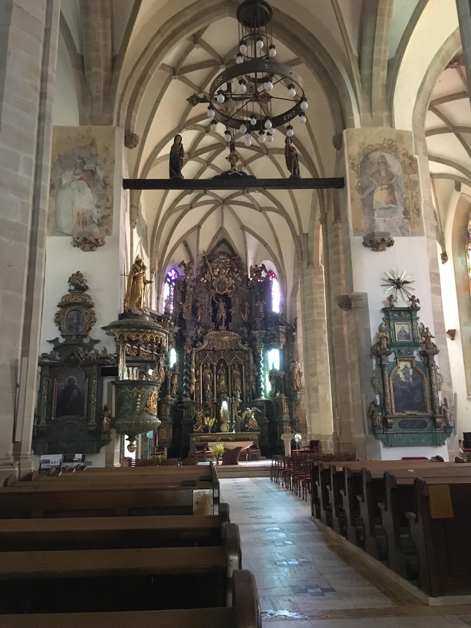 中は16世紀由来のゴシック様式が特徴的なカトリック教会。訪問時は扉が開いており自由に見学することができました。とても高さのある教会ですが、尖塔に登れるかは不明でした。