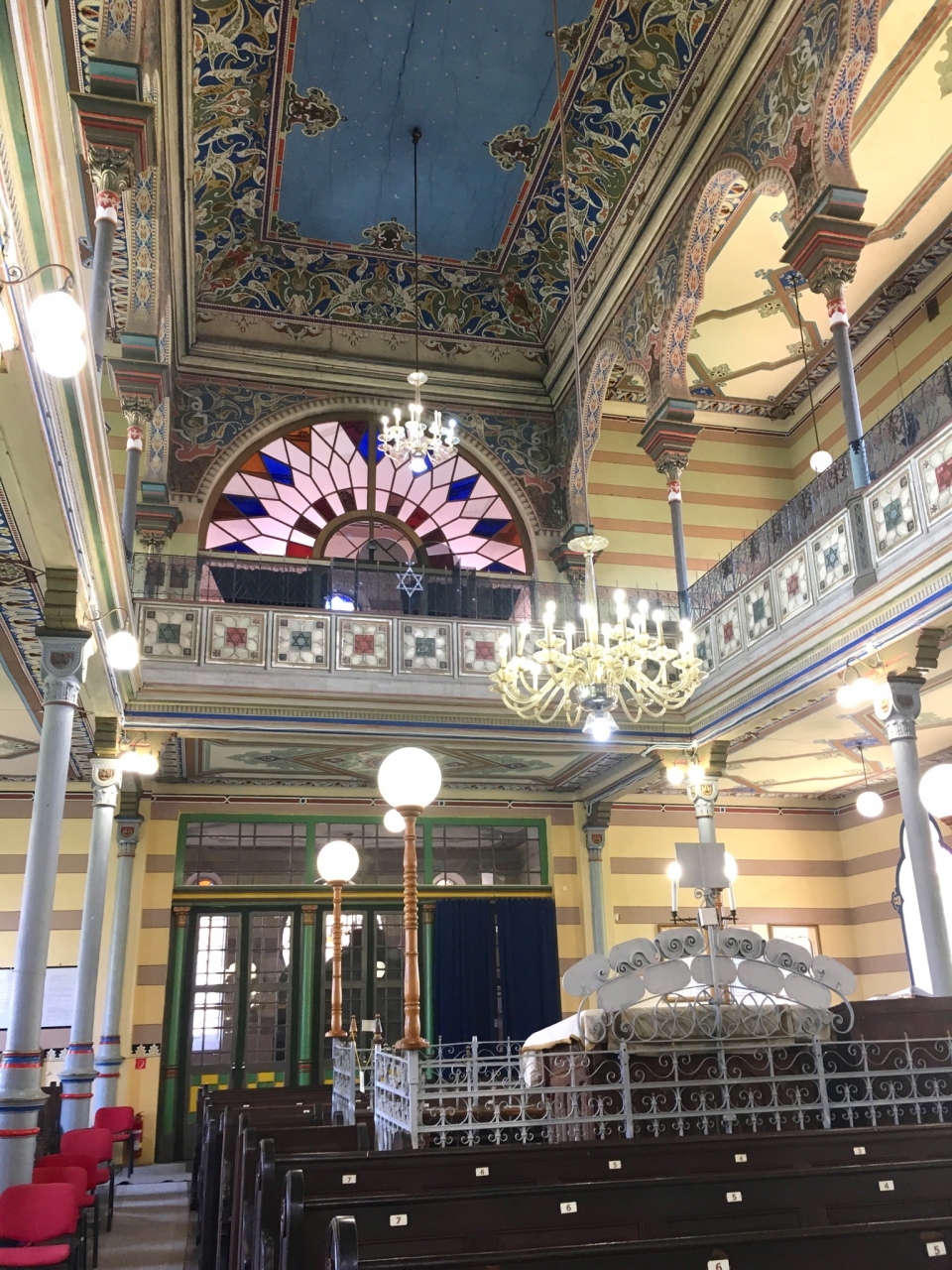 この黄色が印象的なシナゴーグは1898年に建てられ、外観もさることながら内部も荘厳でとても美しく、一見の価値ありです。これらは近郊やコシツェの職人たちによって作られたそうです。
