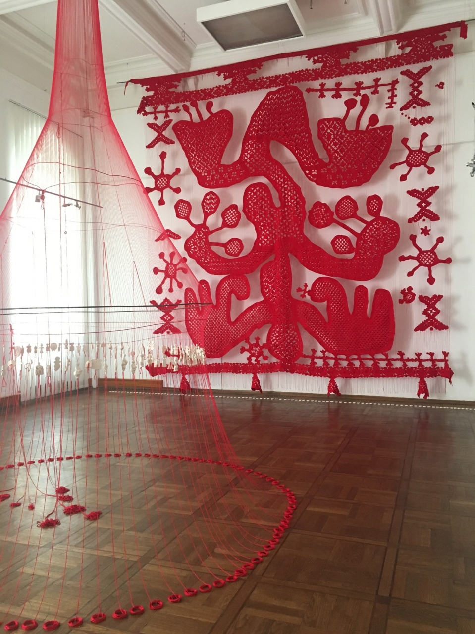 自分が入ったときは現代美術の展示フロアのみの開館で、ウクライナの刺繍などをモチーフにした現代的な作品の展示が行われていました。