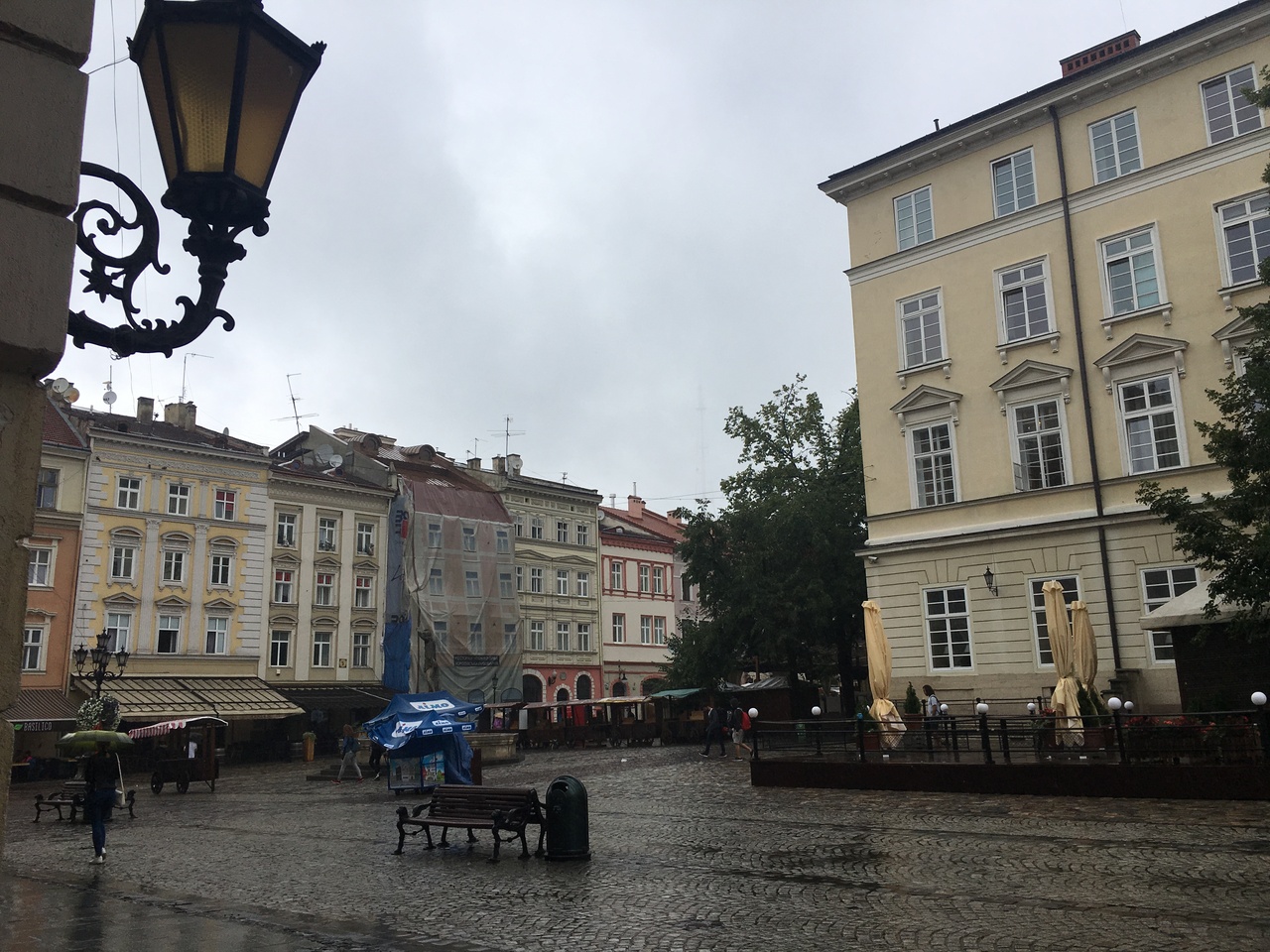 ウクライナの古都リヴィヴは、その歴史的経緯からポーランド、スウェーデン、ドイツ、ソ連などといった国から侵略や統治を受けてきました。その中でもこのリノック広場=市場の広場は旧市街地の中心であったため、もともと上流階級が住んでおり16世紀建造の建物に囲まれています。