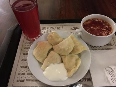 味は値段なりの学食風味なのですが、ボルシチ、ペリメニ(ピエロギ)、キエフ風カツレツなど主要なウクライナ料理があるので、気軽にウクライナ料理を楽しみたい時には良いです。