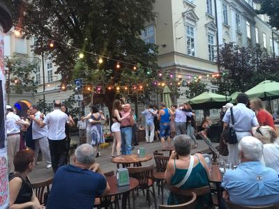 いつも賑わっていますが、特に夏場の夜はライブやダンスなどのパフォーマンスがあちこちであり、ヨーロッパの観光地の夏といった趣です。- 旅行時期