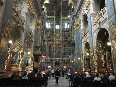 日曜に行くとミサの参列者で内部はたくさんの人が。工事中でしたが天井が高くとても広く感じました。