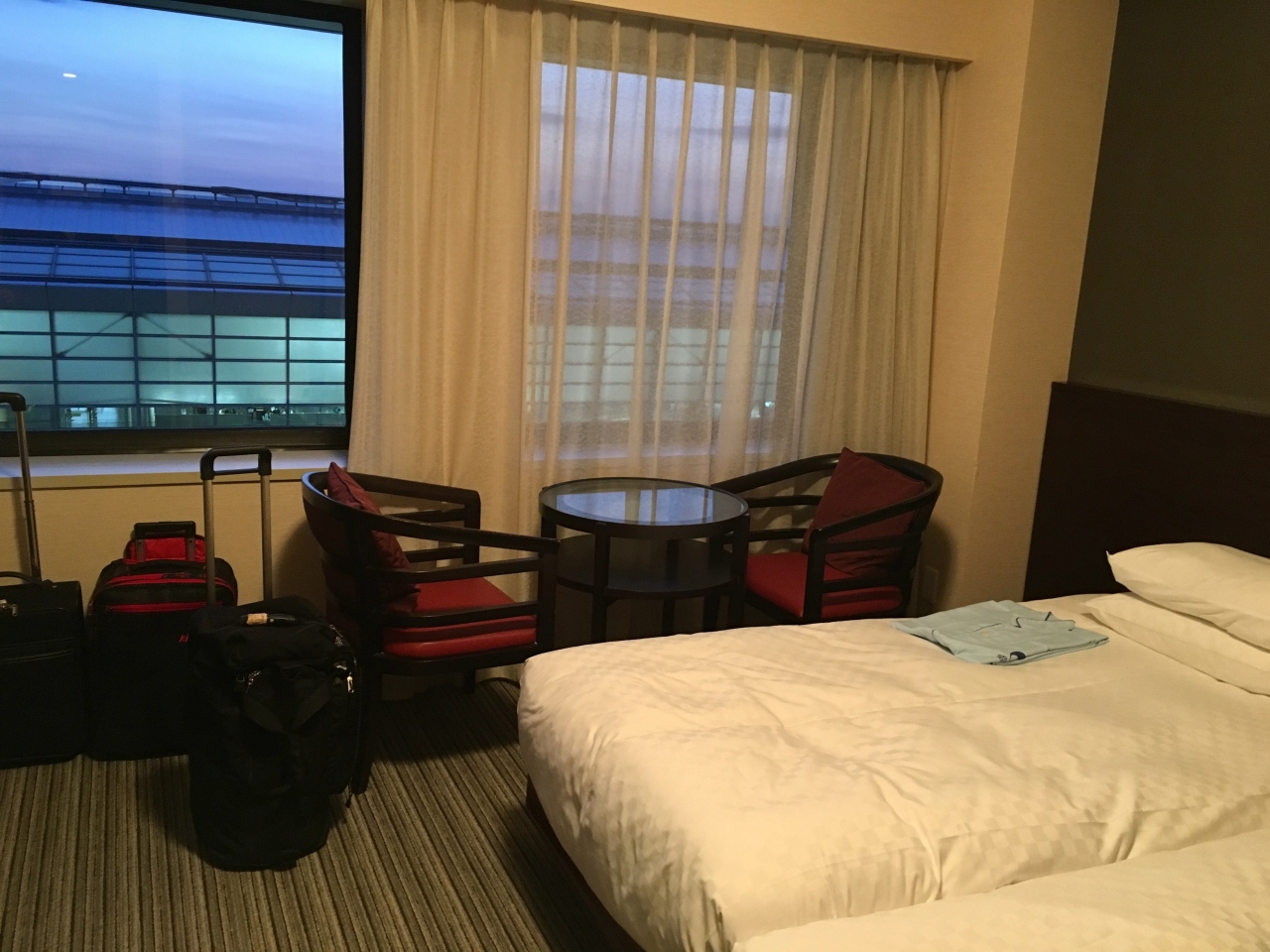 客室や風呂場(バスタブあり)から空港ビルや飛行機の離発着が見えたり、客室のマグカップが常滑焼だったりと心憎いサービスも。接客も気持ちよく過不足無し。