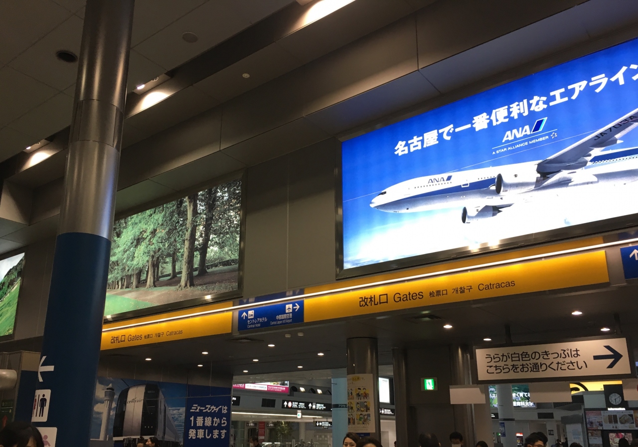 名古屋からは特急(無料)で約35分・870円とそれなりの規模の国際空港にしては近くで安くアクセスできます。2017年現在、セントレア→名古屋への終電は23時半ごろになっています。夜は本数が減るのでご注意を。