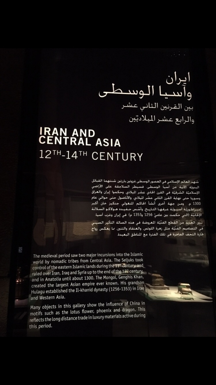 常設展は地域・時代・テーマごとに旧→新の順で展示されており、中東のみならず中央アジアのイスラム文化をも取り上げているのが興味深かったです。