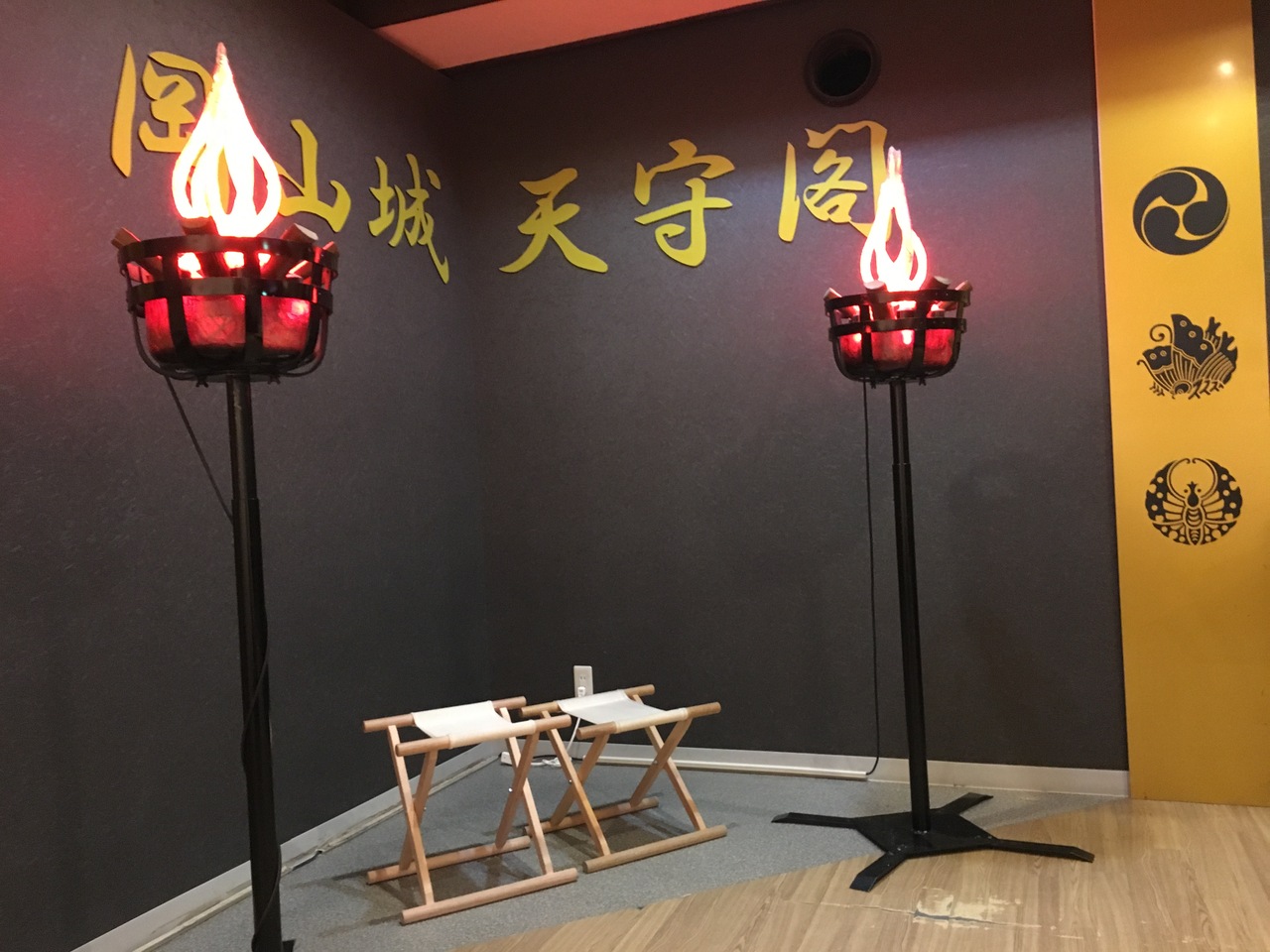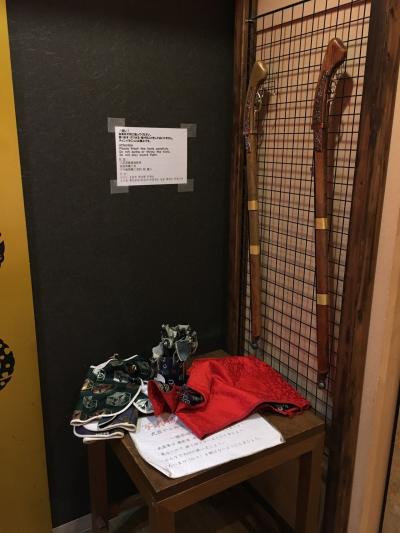 この城は、外観が真黒なので烏城と呼ばれています。戦後の再建築で中はエレベーターで上がる方式の城。中には展示物や戦国コスプレコーナー・写真撮影スポットがありました。地下にコインロッカーあり。