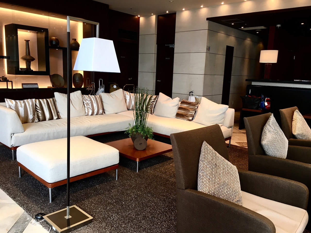 館内に足を踏み入れると、茶色を基調とした落ち着いた雰囲気のロビーに漂うアロマのいい香り。そしてチェックイン時のスタッフさんの笑顔。