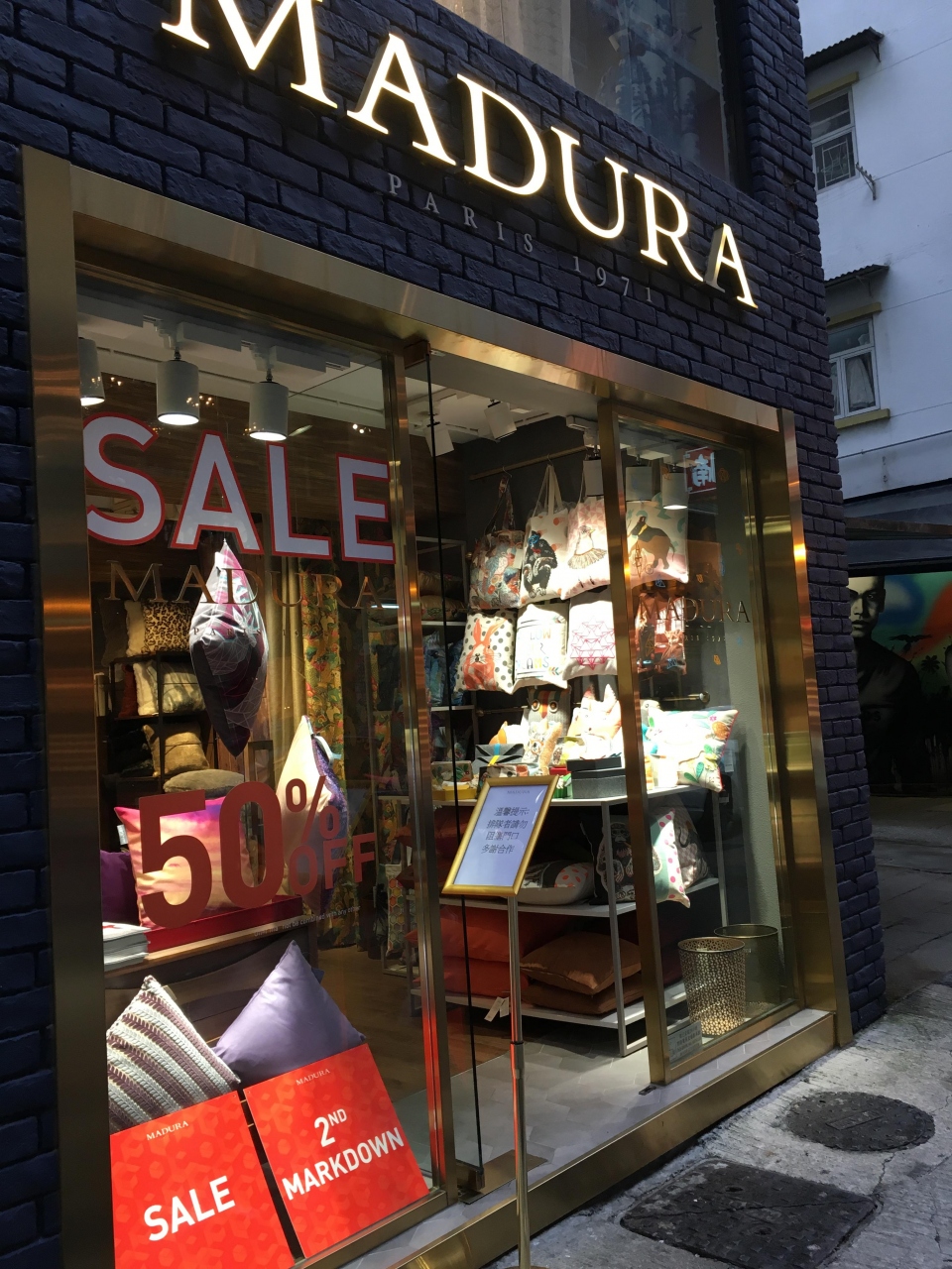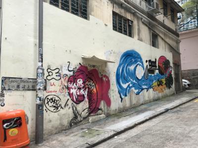 街を歩くと建物にグラフィティが架かれていたり、イベントのフライヤーが張られていたり、ごちゃごちゃ感あふれる町の雑踏に佇むカオスな雰囲気がとてもいい感じです。また女性がスキそうな雑貨店もたくさんありました。そういう場所がスキな人にとってはPMQも含め1日あっても足りないと思います。