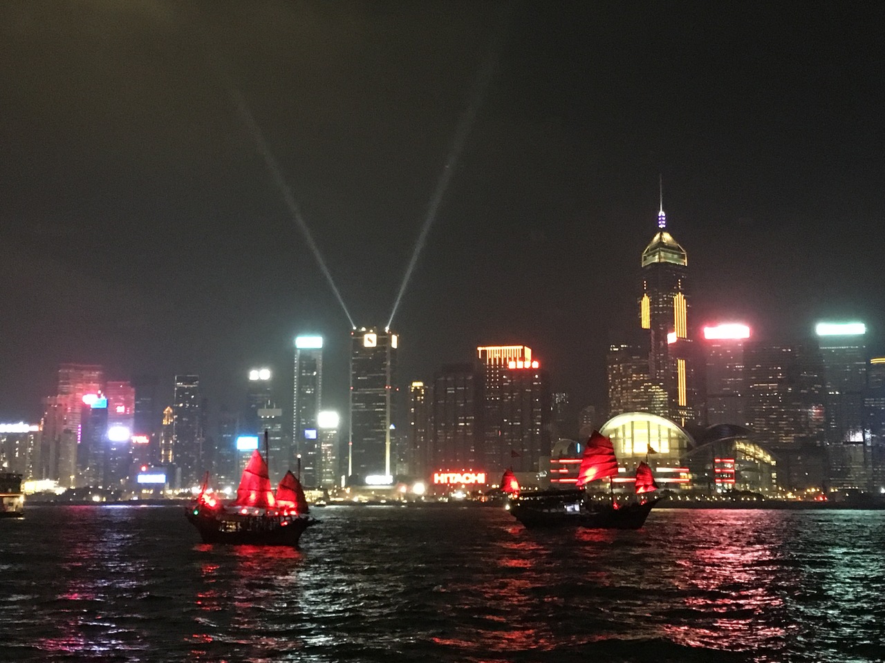 有名すぎるほど有名な、夜の香港名物・摩天楼輝く100万ドルの夜景のライトアップショーで、毎夜8時スタート。