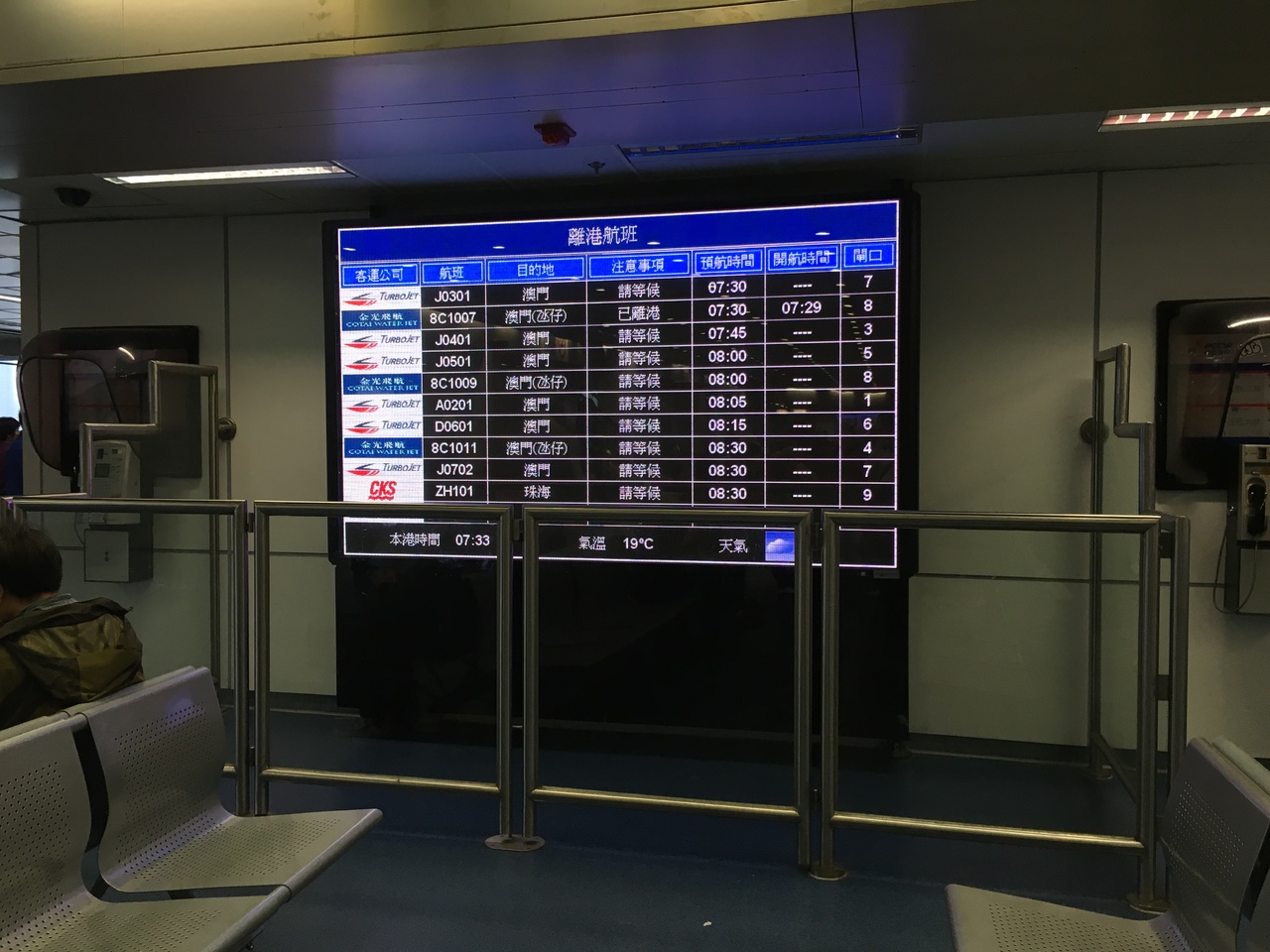 マカオ行きのターボジェットの発着点の1つ。九龍半島側にも港はありますが本数が少ないのでこちらを使う人が大半だと思われます。
