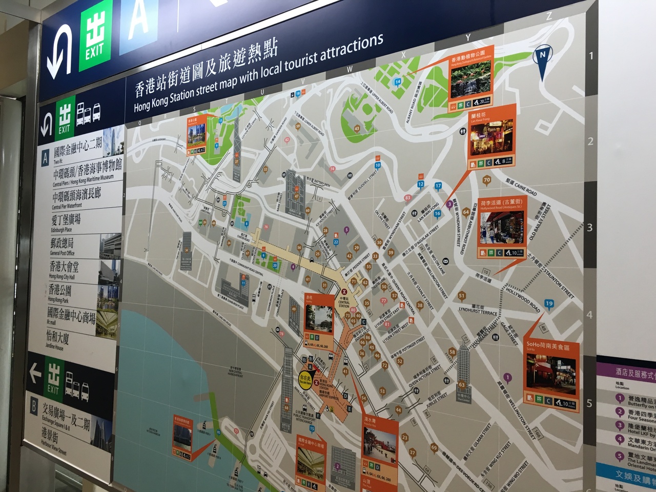 香港島の地下鉄中環駅=セントラル駅は交通の要衝で、エアポートエクスプレスの香港駅、九龍半島行きのスターフェリー、マカオ行き港澳客輪埠頭へと接続しています。