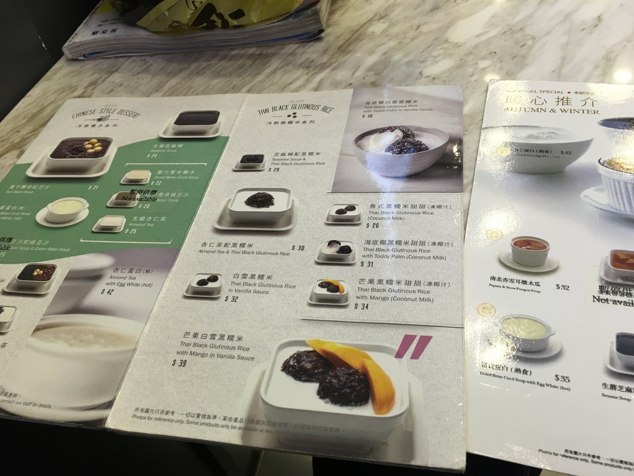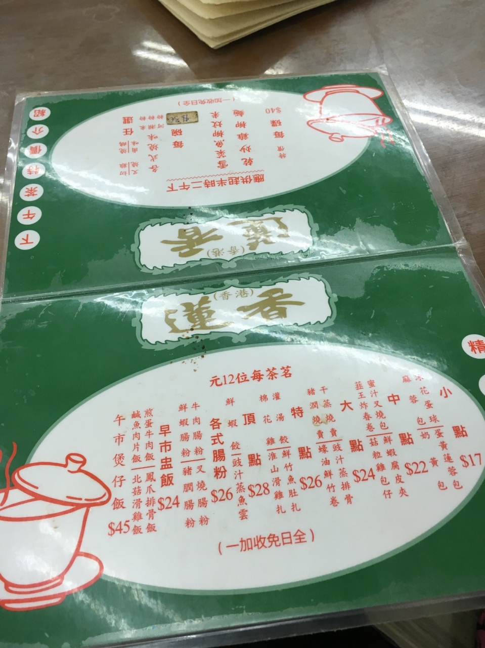 点心等の食事メニューを見ましたがどれも美味しそうでした。ただし広東語表記オンリーで店員も英語を話すような雰囲気はありませんでした。- 旅行時期