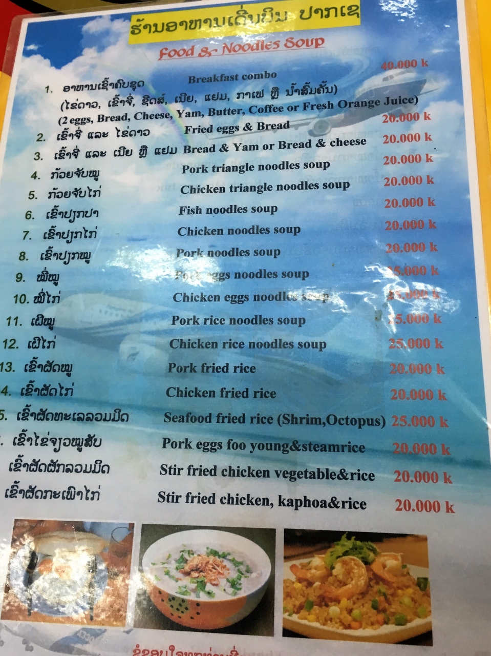 値段も飲物を含めて50000kipくらいだったと思います。