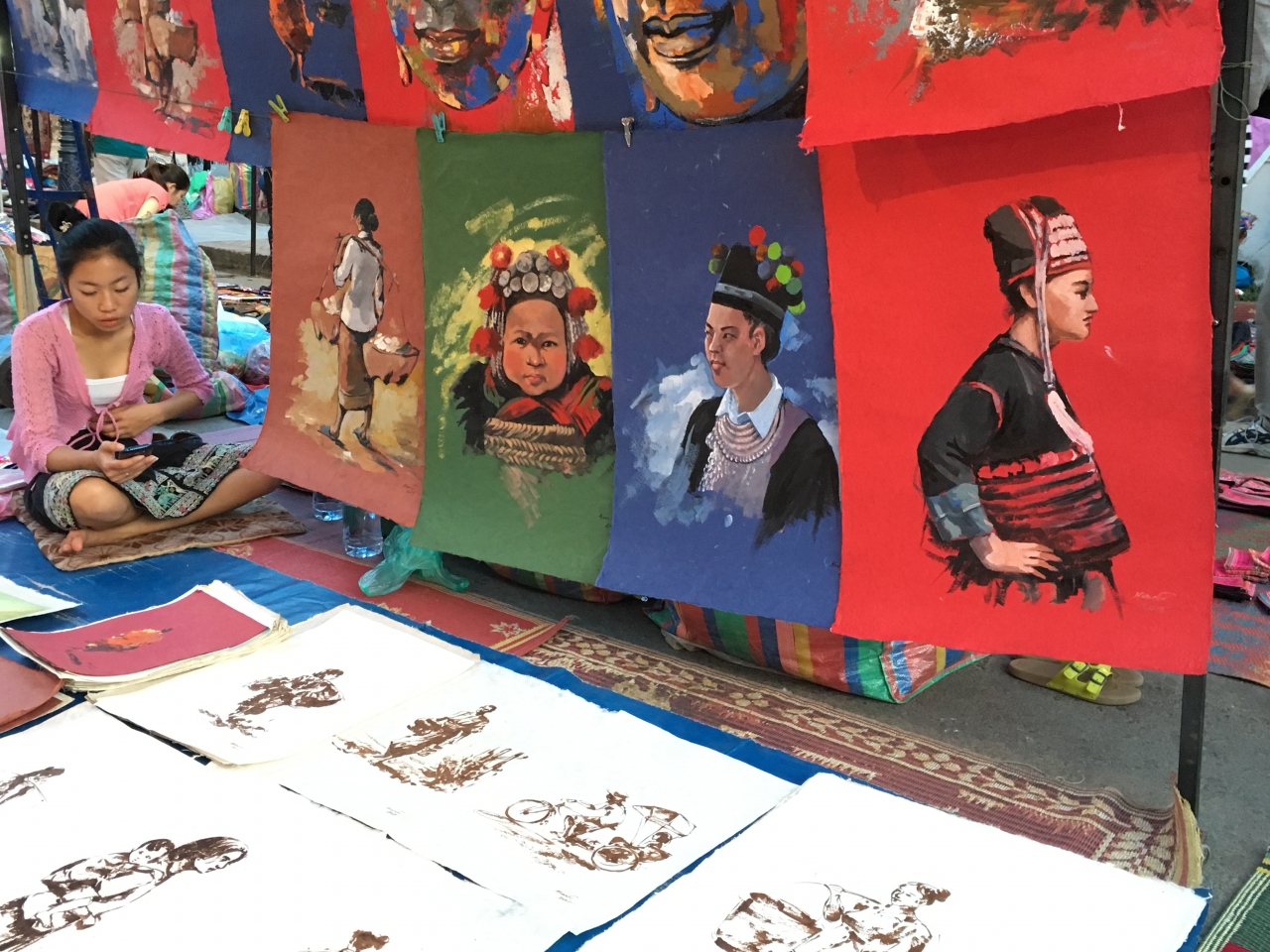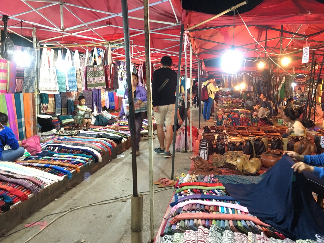 ルアンパバーンの夜の名物のナイトマーケットは、町一番の目抜き通りシーサワンウォン通りに夕方4時ごろからテントが並びだして始まります。