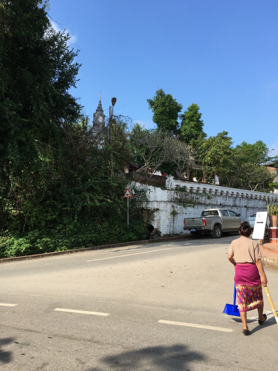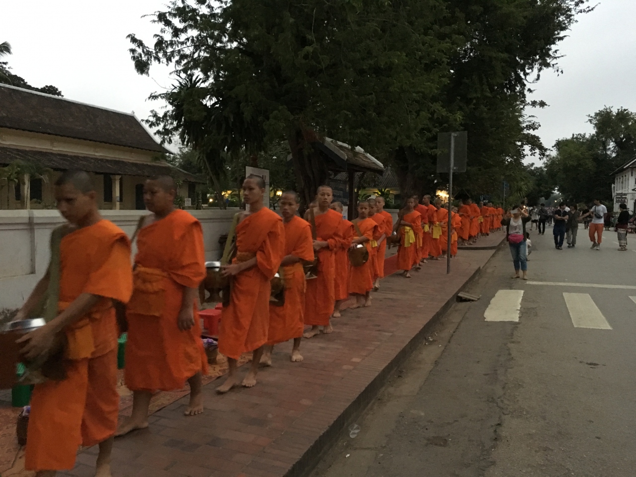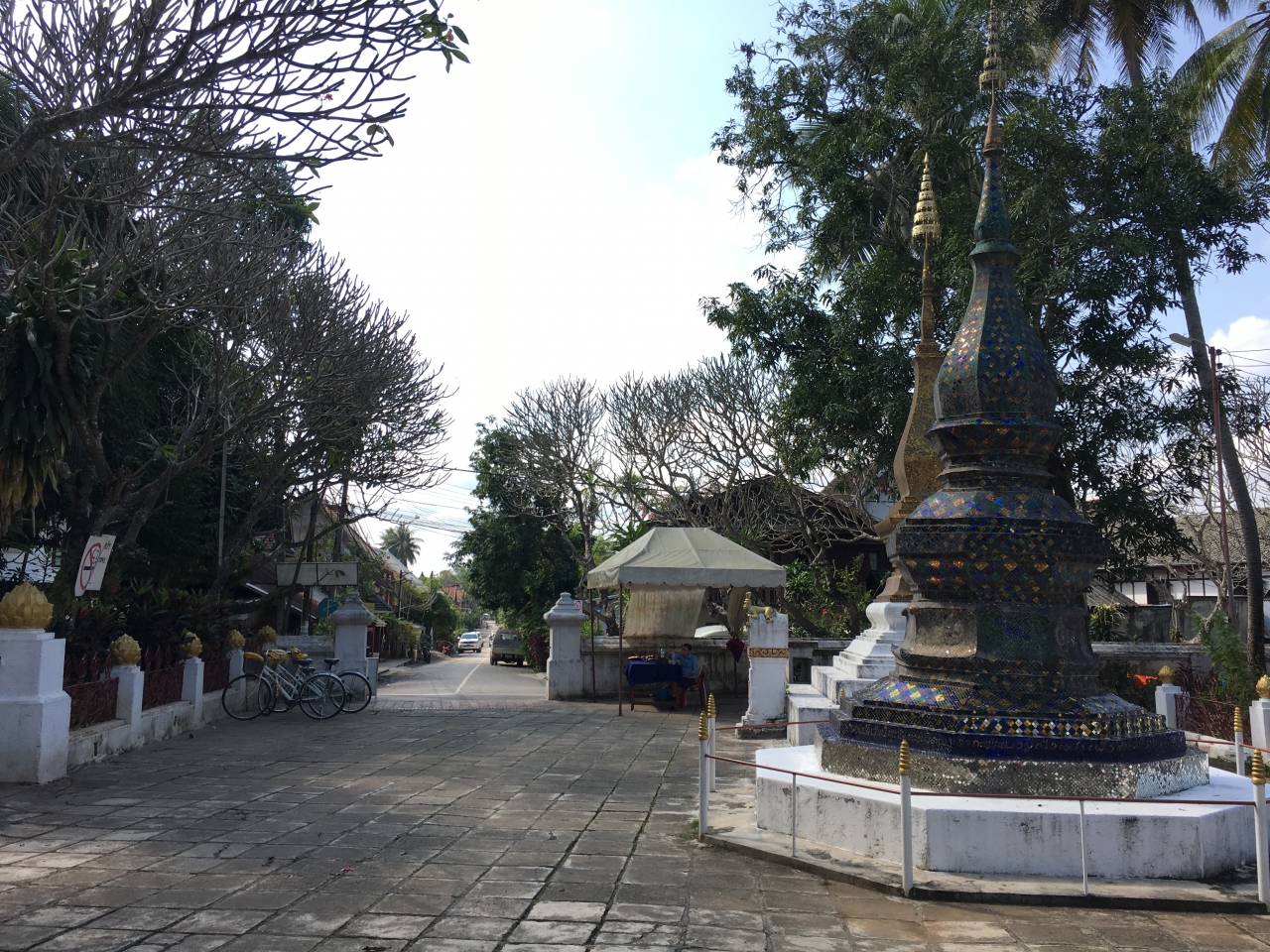 道の両脇には伝統様式の建物のお店が建ち並び、途中には王宮博物館やお寺などもあります。また朝は托鉢、夜はナイトマーケントが催され、ルアンパバーン観光の核となる通りです。あまりに観光地化され過ぎているため、どこかテーマパークすら感じさせる通りでもあります。