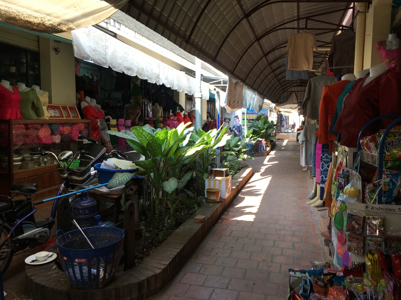 ラオスの手工芸品や特産物、Tシャツや民族服など、お土産品が並んでいることから完全に観光客向けのマーケットです。