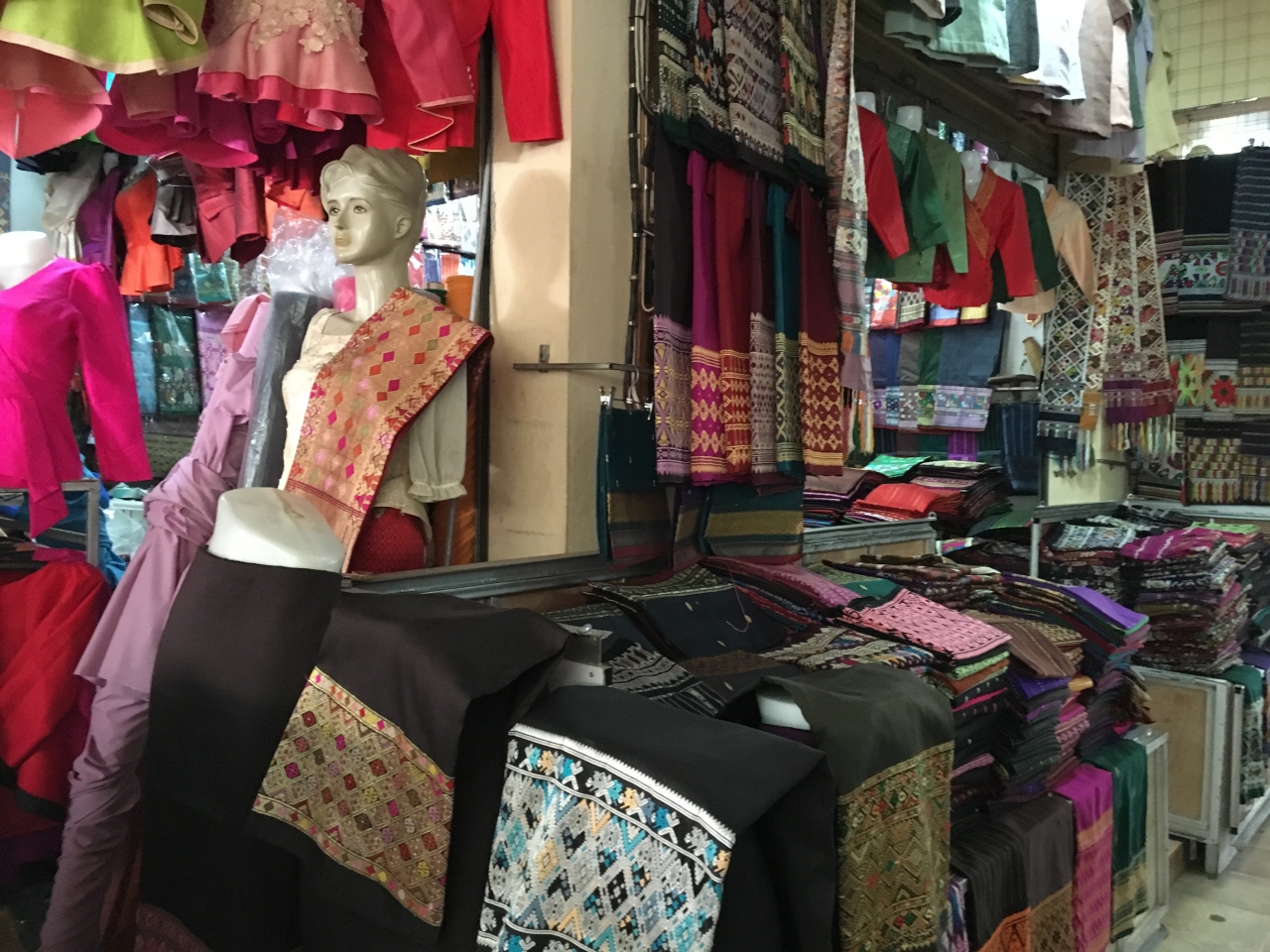 とにかくお店の種類も品揃えも豊富で、ここに来ればなんでも揃うと思います。モン族などの刺繍服や生地からブツ切りの肉の塊まで、どれも見ごたえがあって楽しいです。