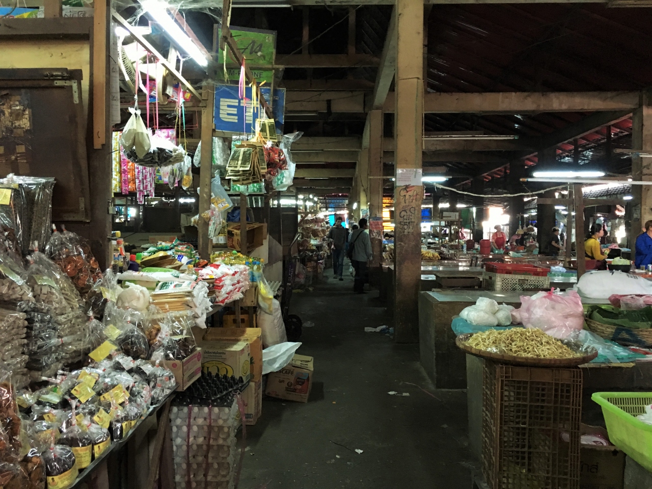 1階、2階、屋外と扱っている品物の種類によって区画が違います。1階は衣料品、日用雑貨、生鮮食品(肉)など、2階は寂れ気味ですが貴金属など、屋外は野菜などを扱っています。