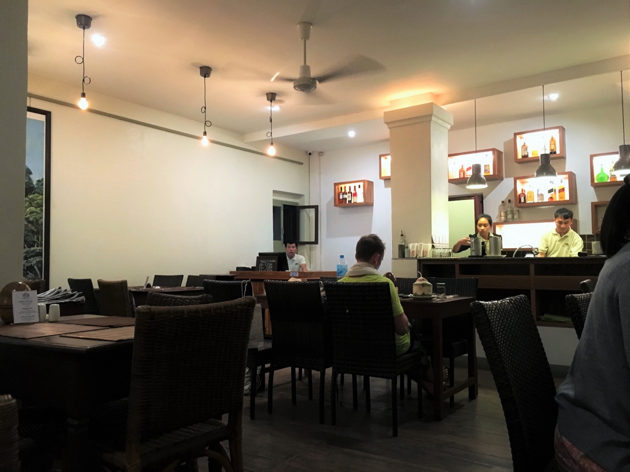 夜にカフェで利用したときは、サービスが丁寧で洗練されていて好印象。値段は日本並みで食べ物は日本よりも割高。ただし飲物は20000kip前後、スイーツ類は30000kip前後とカフェ利用は食べ物に比べお手頃プライス★お味も量もまずまずでしたが、フランス本国のケーキと同じように甘さはややドロ甘系。
