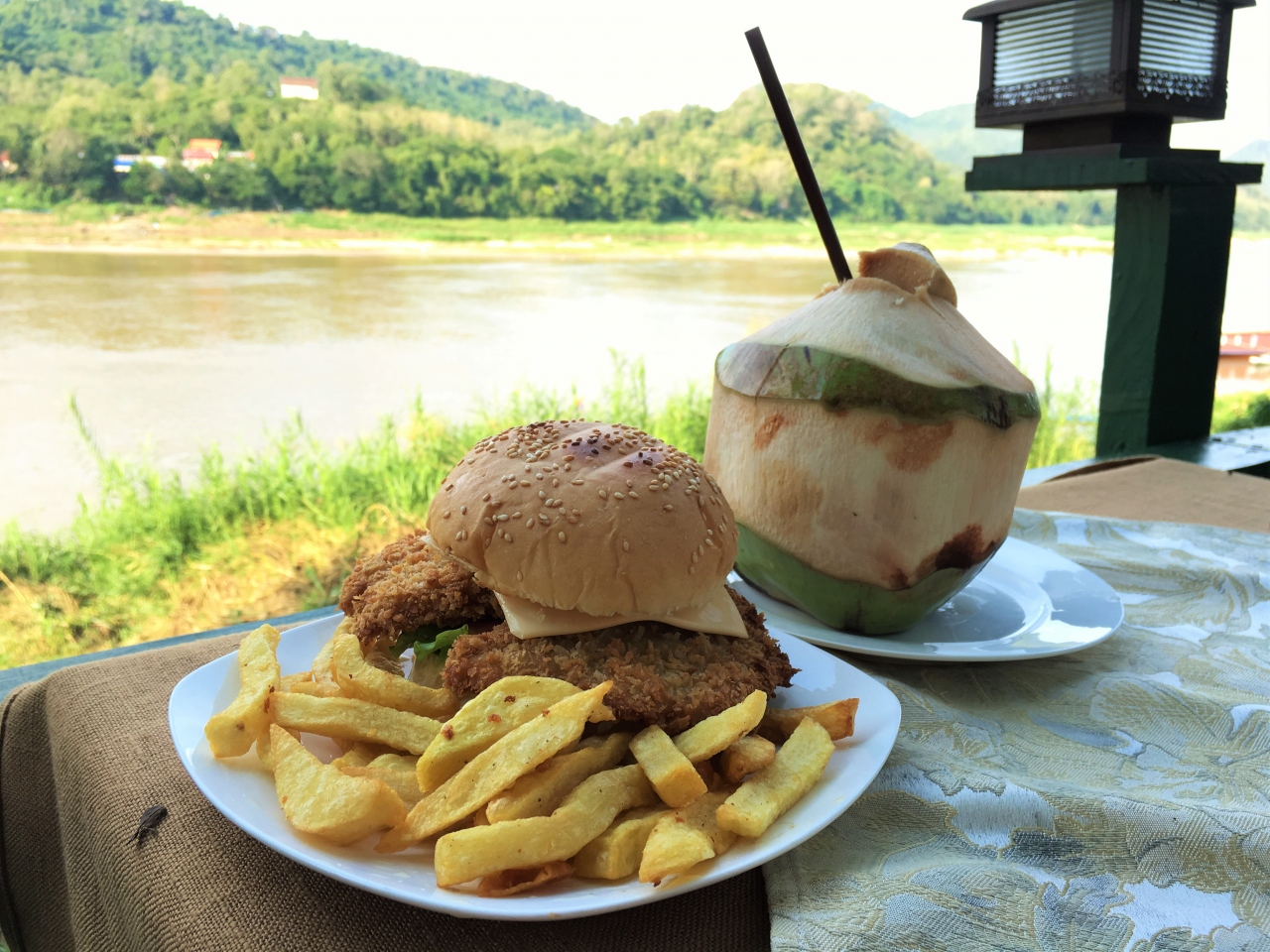 • メコン川沿いでフィッシュバーガーを食べよう!