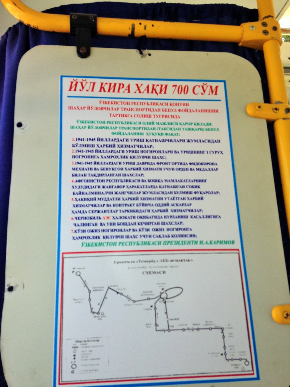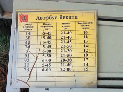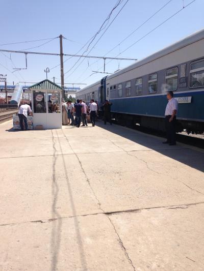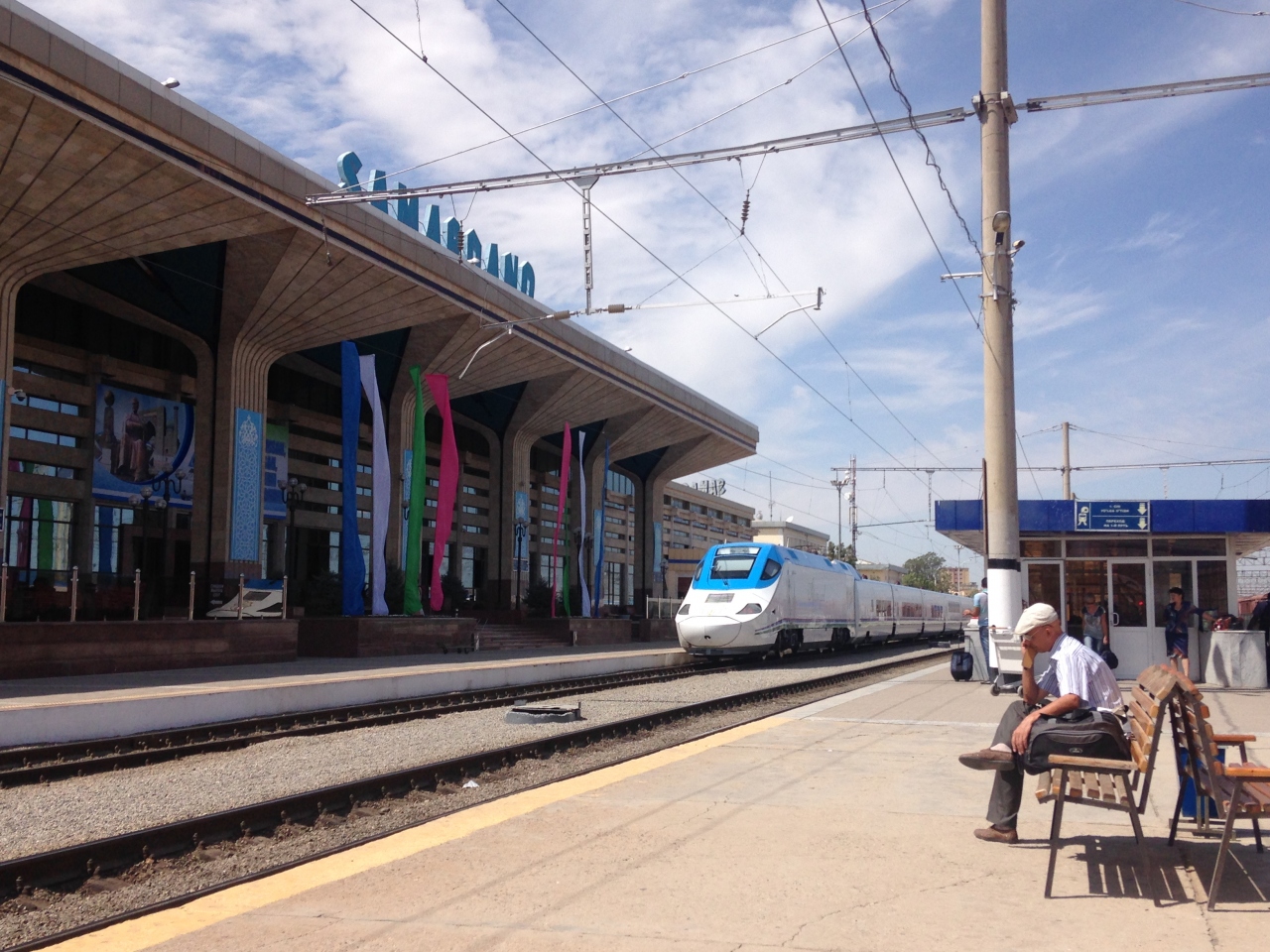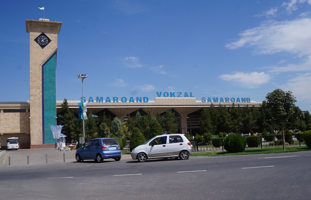 サマルカンドの鉄道駅は、町の中心部から離れた北西方面の新市街地にあります。交通機関はバスが頻発しており、3・73番がレギスタン通り⇔鉄道駅間を20~30分ほどで結んでいます(運賃700スム)。