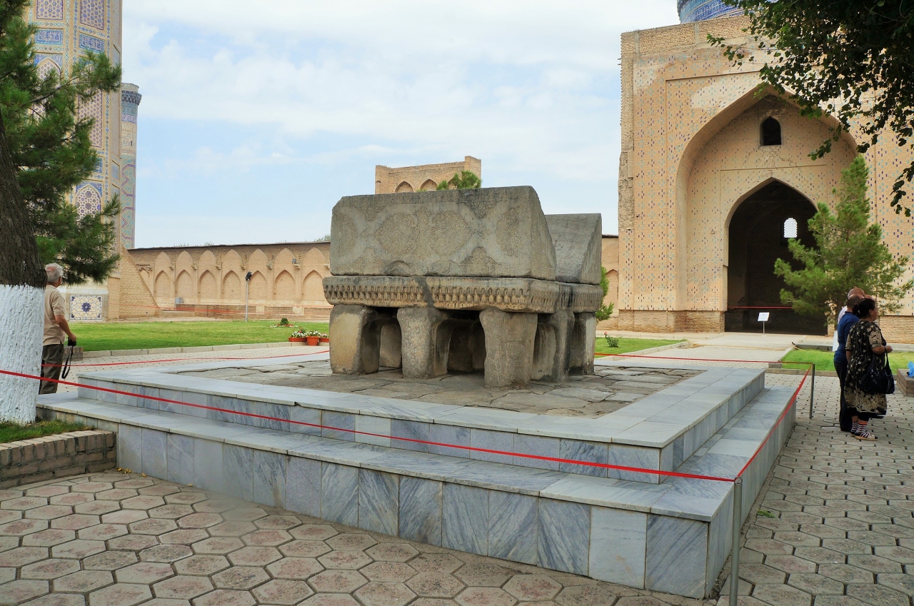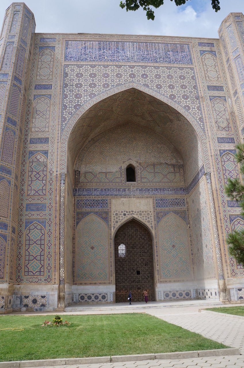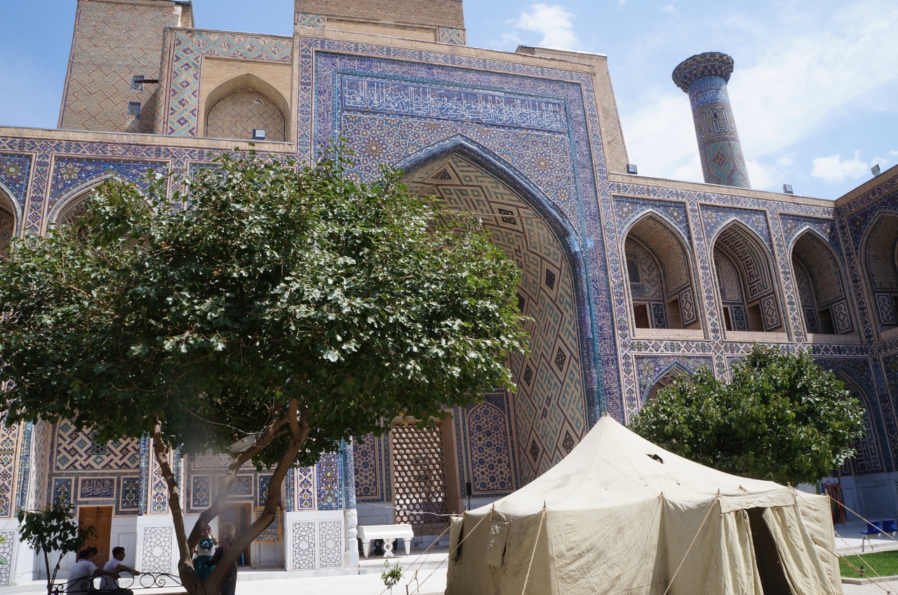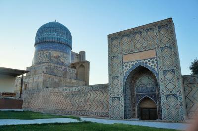 ティムールの愛妻ビビハニムにちなんだこのモスクは、中央アジアでもかなり大きく広いモスクで、1万人以上の礼拝客を収容できるほどの規模。ただし落成を急いだため造りがもろく度々の地震によって崩壊してしましました。現在はユネスコの支援を受けて修復されています。