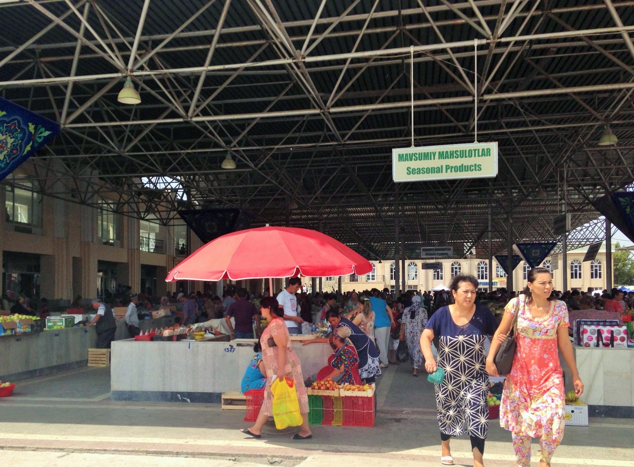 レギスタン広場の北、ビビハニムモスクに隣接するサマルカンド随一のバザールです。