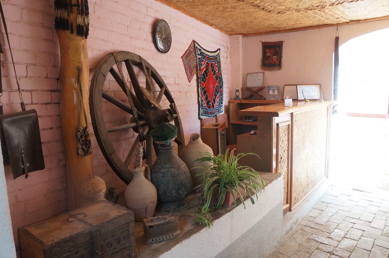 木でできた広めの伝統的な装飾がある建物で、個室型の部屋構成です。部屋の広さは十分あり、館内はよく手入れされていてとても清潔。バスルームはシャワーだけですが、タオル等のリネンといった最小限の設備は完備。水のボトルがついてくるのも嬉しい。部屋によってはテラスもあって、のんびりできるのが良いです。