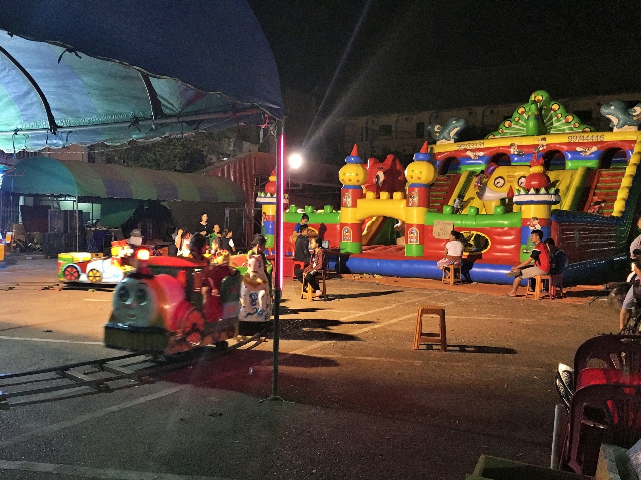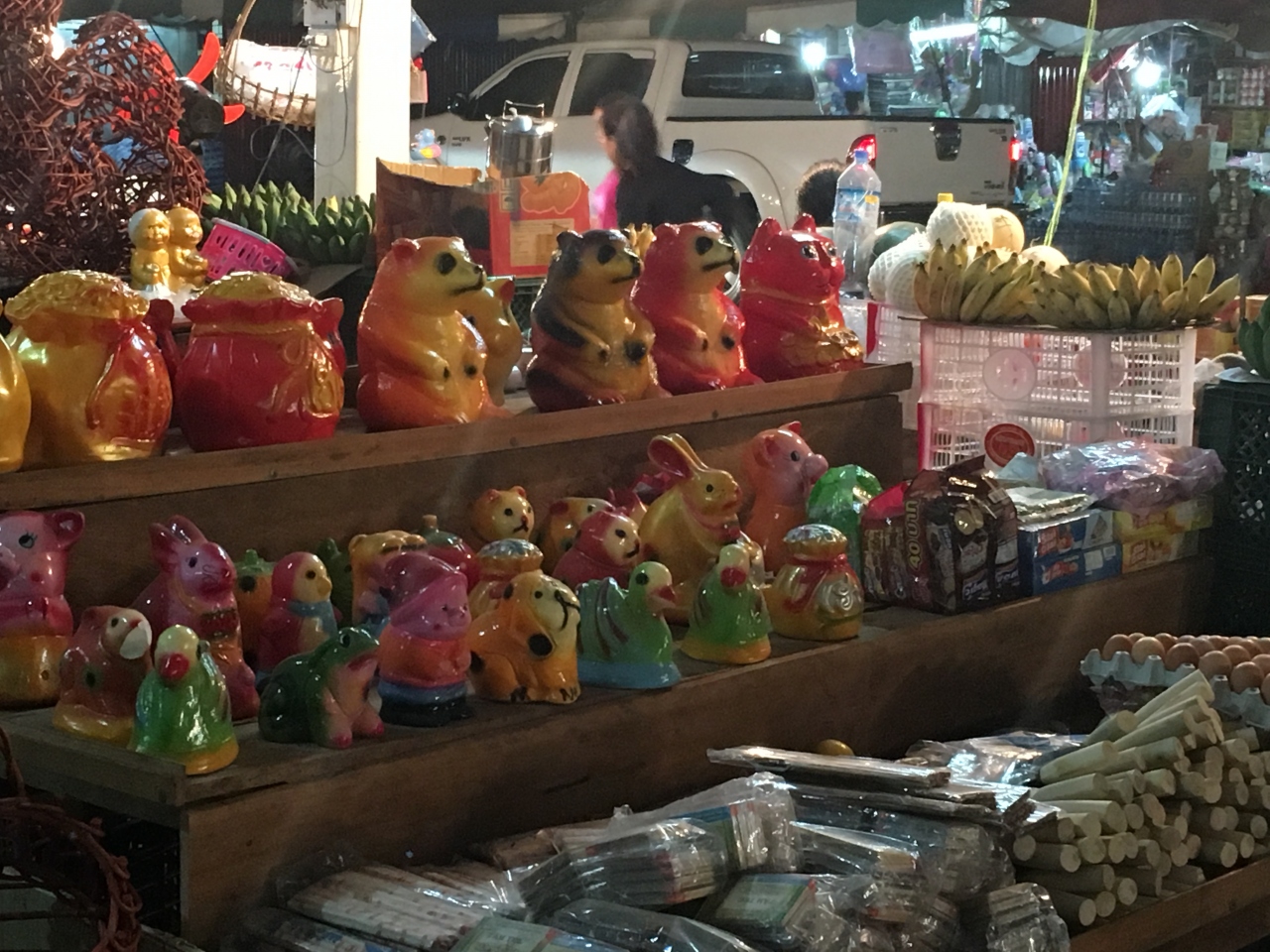 町のやや外れの東部にあるダオファン市場に比べるともっと小規模ですが、こちらもなかなか見ごたえがあります。移動遊園地のようなものもあり、夜遅くまで老若男女が行き交い賑わっていました。